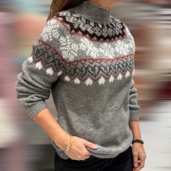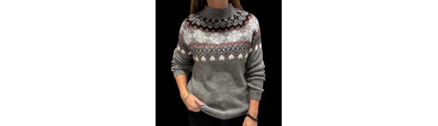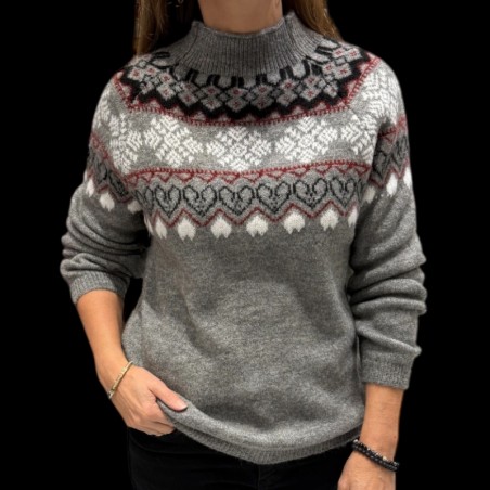 4. Pourquoi choisir en ligne un pull gris col cheminée à manches longues avec cœurs et flocons
