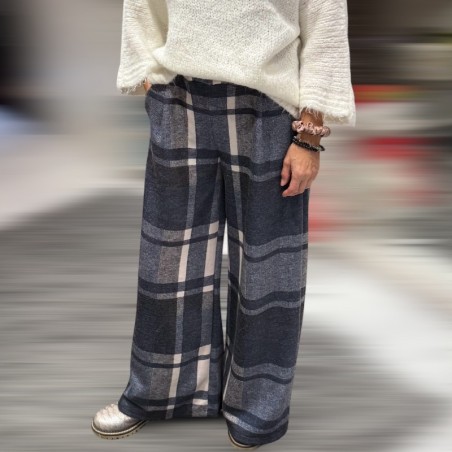 5. Acheter en ligne un pantalon quadrillé bleu et gris jambe large pour allier confort et élégance