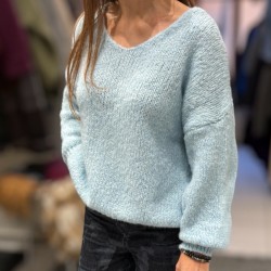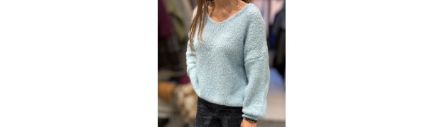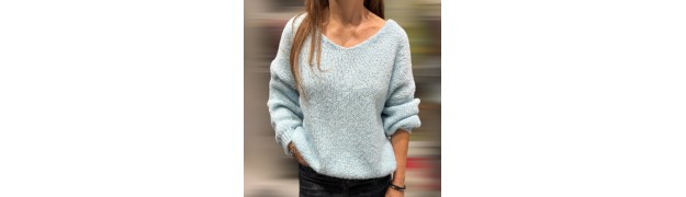 4. Pull manches longues bleu ciel col V : pourquoi l’acheter en ligne est un choix malin en hiver