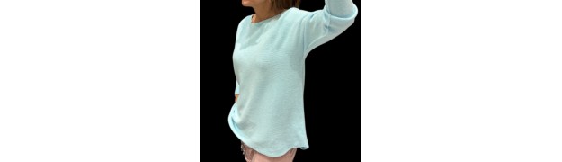 Le pull bleu ciel à manches longues est apprécié pour son confort et sa praticité. L’encolure ronde assure une sensation agréable au niveau du cou, tandis que les manches longues protègent efficacement du froid. La couture le long du bras améliore la structure du vêtement et participe à un meilleur maintien.