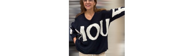 4. Acheter un pull AMOUR bleu marine oversize pour un vêtement confortable et tendance toute l’année