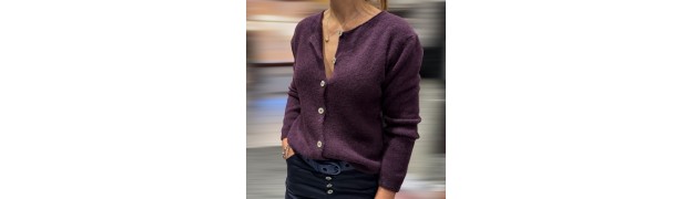Grâce à la couleur prune, ce cardigan s’intègre facilement dans un look à la fois classique et audacieux : il peut être porté sur un jean pour une allure casual, ou sur une jupe pour une tenue plus sophistiquée. Les longues manches apportent de la fluidité et du confort, tandis que le col du gilet (ou son ouverture complète) permet de le fermer pour plus de chaleur ou de le laisser ouvert pour un style plus détendu. Les boutons en nacre ajoutent un charme élégant qui élève l’ensemble.