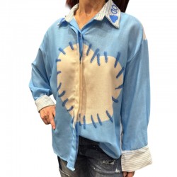 Les coeurs décoratifs ajoutent une dimension ludique et romantique à ce chemisier. La coupe oversize offre une silhouette fluide et décontractée, facile à associer avec un short, un pantalon léger ou une jupe fluide. Ce chemisier devient une pièce clé pour un look vacances ou quotidien moderne et stylé.