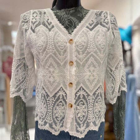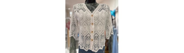 Ce type de chemisier est idéal pour créer des looks printaniers évolutifs. Il peut être porté seul pour un effet sophistiqué ou ouvert sur un top pour un style décontracté. Sa coupe courte met en valeur la silhouette tandis que la broderie apporte une texture raffinée, parfaite pour les journées ensoleillées.