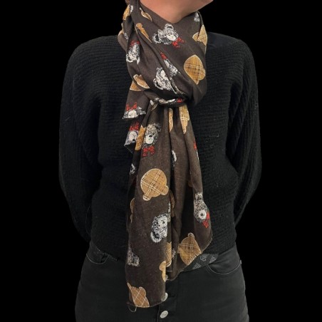 5. Écharpe marron fantaisie à oursons en viscose : le cadeau original et cocooning de l’hiver