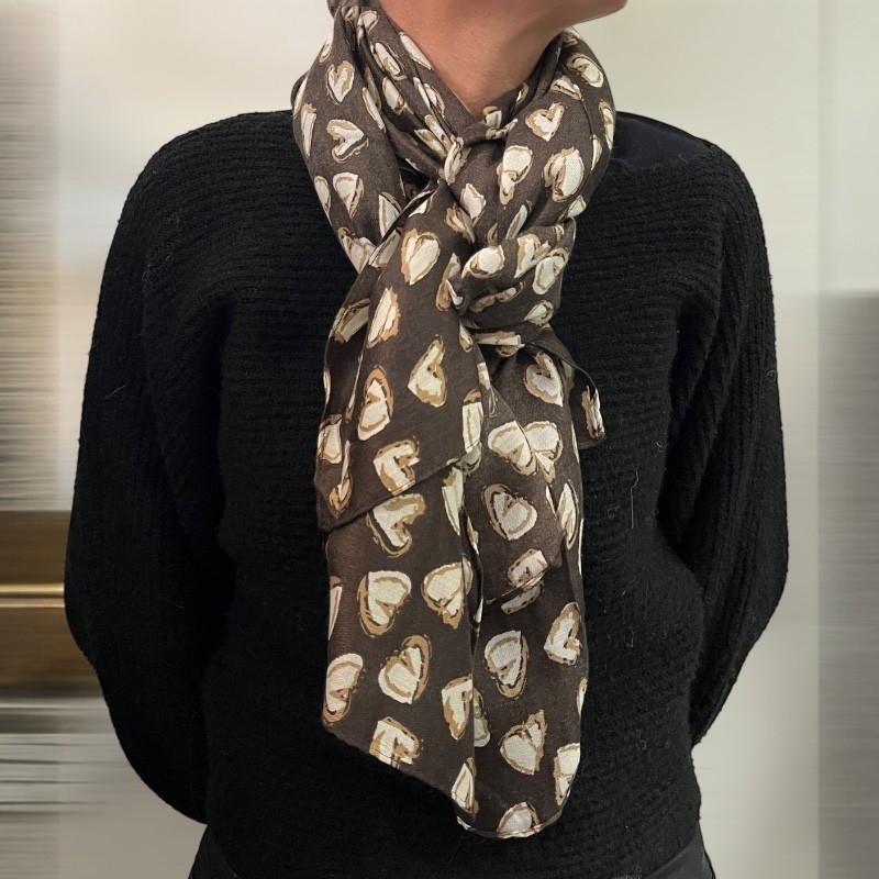 9. Pourquoi acheter en ligne une écharpe en viscose avec des cœurs marron est un choix intelligent