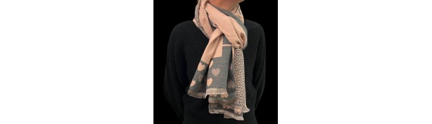 6. Sublimez vos tenues hivernales avec une écharpe en viscose et laine aux tons gris et rose