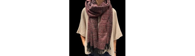 8. L’écharpe chaude bordeaux avec motifs cœurs et franges en viscose et laine : un cadeau élégant, féminin et réconfortant