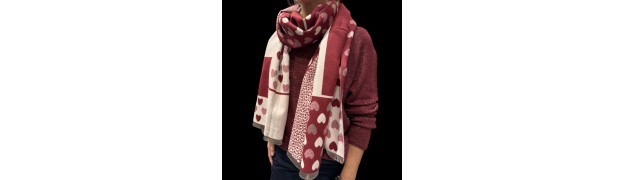 7. Pourquoi acheter en ligne une écharpe en viscose et laine bordeaux et beige avec cœurs pour allier chaleur, douceur et élégance en un seul accessoire