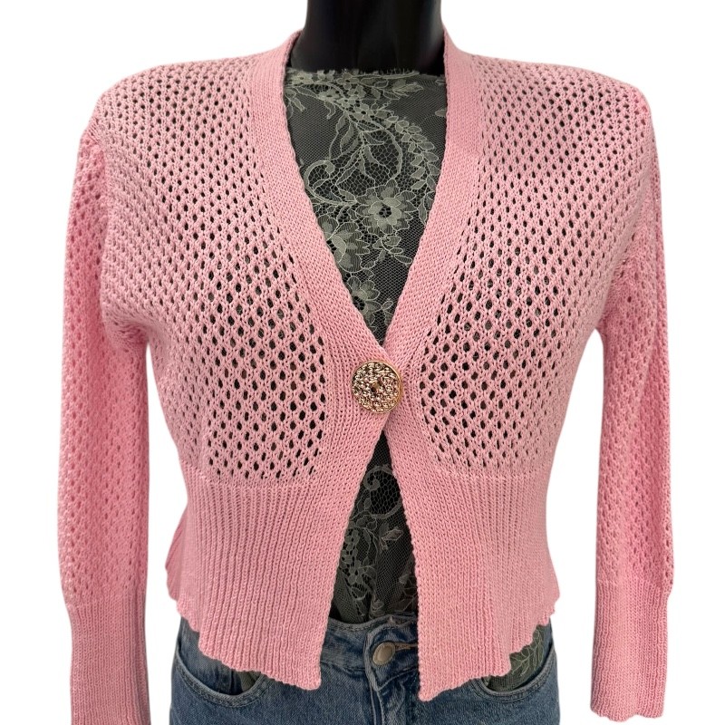 cardigan court en maille avec bouton doré