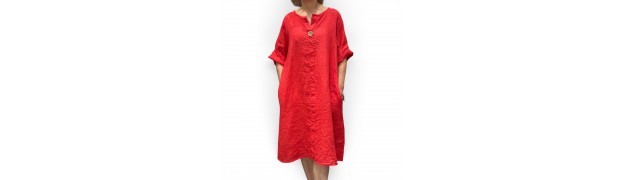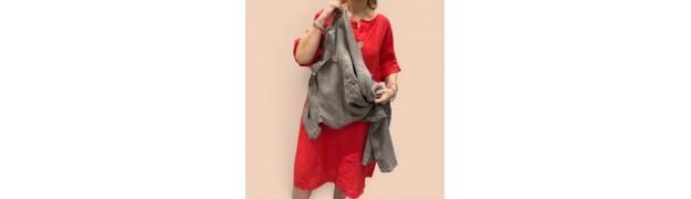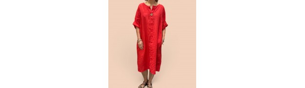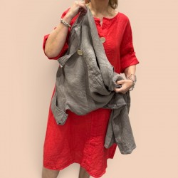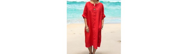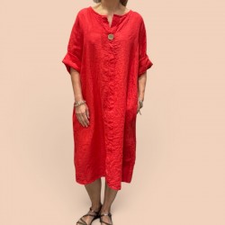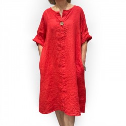 robe ou tunique en lin avec col V et bouton en noix de coco