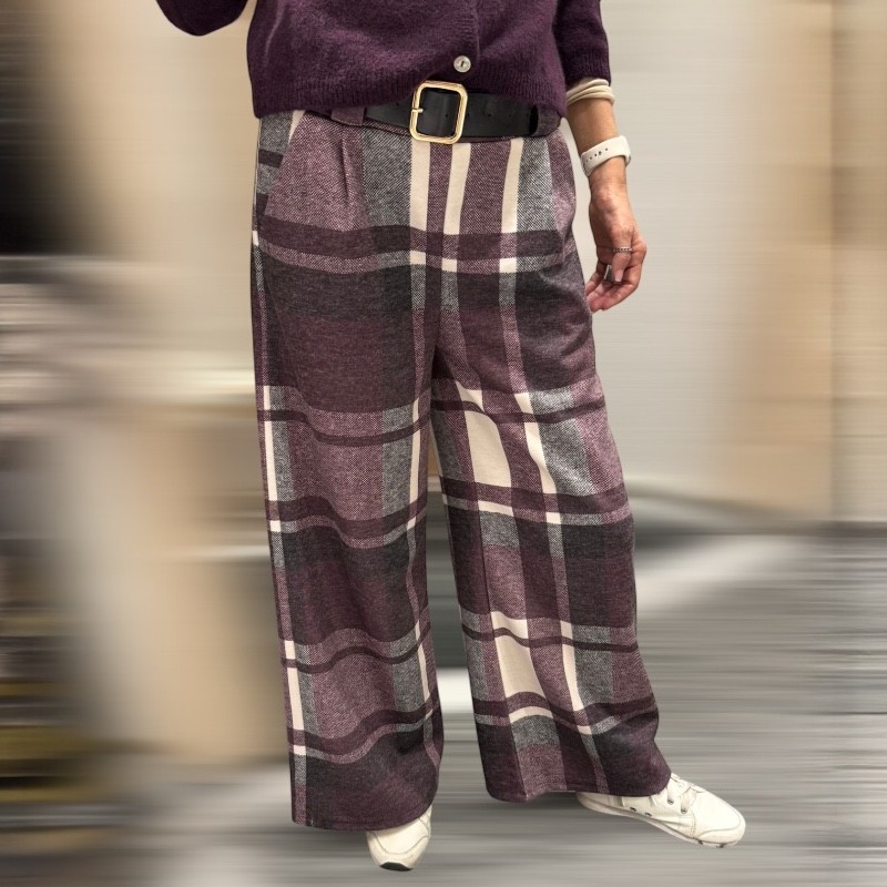 L’imprimé quadrillé est un classique de la mode, particulièrement adapté aux saisons froides : il évoque le tweed britannique, le style “working girl” chic et intemporel. Associé à la couleur bordeaux, cela donne une esthétique riche et sophistiquée, moins austère que le noir mais très élégante. La coupe droite rend l’imprimé plus lisible et équilibré, apportant de la structure sans rigidité.