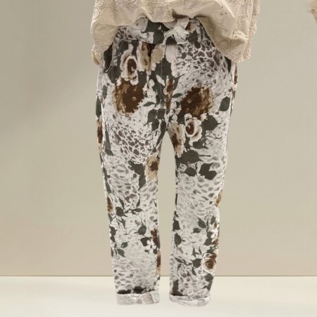 Le pantalon blanc à fleurs s’impose comme un essentiel du dressing printanier grâce à son équilibre parfait entre élégance et décontraction. La taille élastique assure un maintien agréable sans compression, idéal pour les journées plus actives ou les températures changeantes du printemps. Les poches latérales renforcent l’aspect fonctionnel du pantalon, tandis que les poches arrière ajoutent une finition soignée, permettant de porter ce modèle aussi bien en tenue casual qu’en look plus habillé.