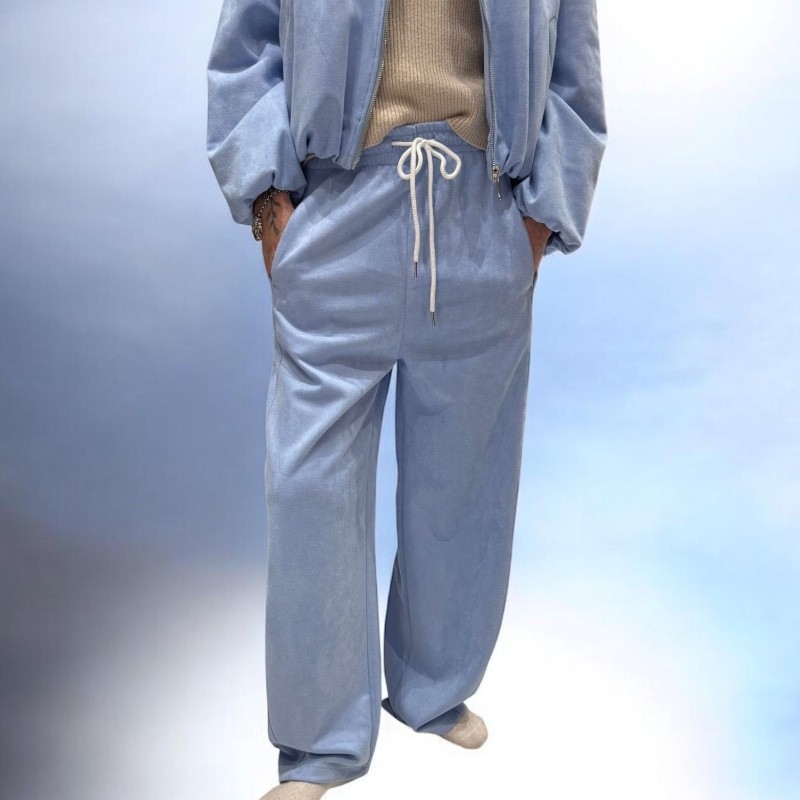 9. Commander en ligne un pantalon jogging bleu ciel en matière peau de pêche pour un confort premium