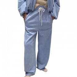 2. Pourquoi commander en ligne un pantalon jogging bleu ciel taille élastique en matière peau de pêche pour un style casual chic
