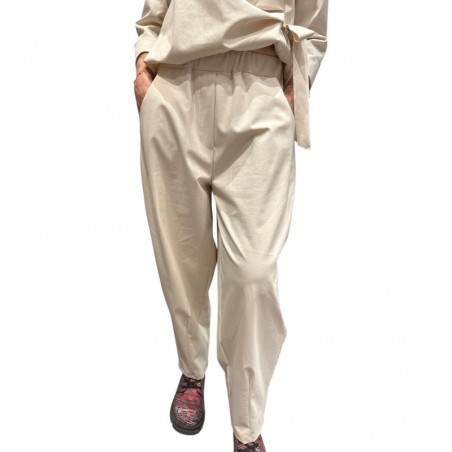 1. Commander en ligne un pantalon beige taille élastique avec jambes ballon fuselées et deux poches latérales pour un style moderne et confortable