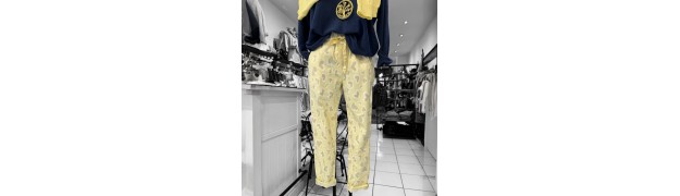 Choisir en ligne un pantalon stretch jaune clair à motifs cœurs est une façon simple de dynamiser vos tenues printanières. Cette couleur fraîche évoque la douceur de la saison et apporte une note lumineuse à votre silhouette. Les cœurs ajoutent un élément décoratif charmant qui personnalise votre look.