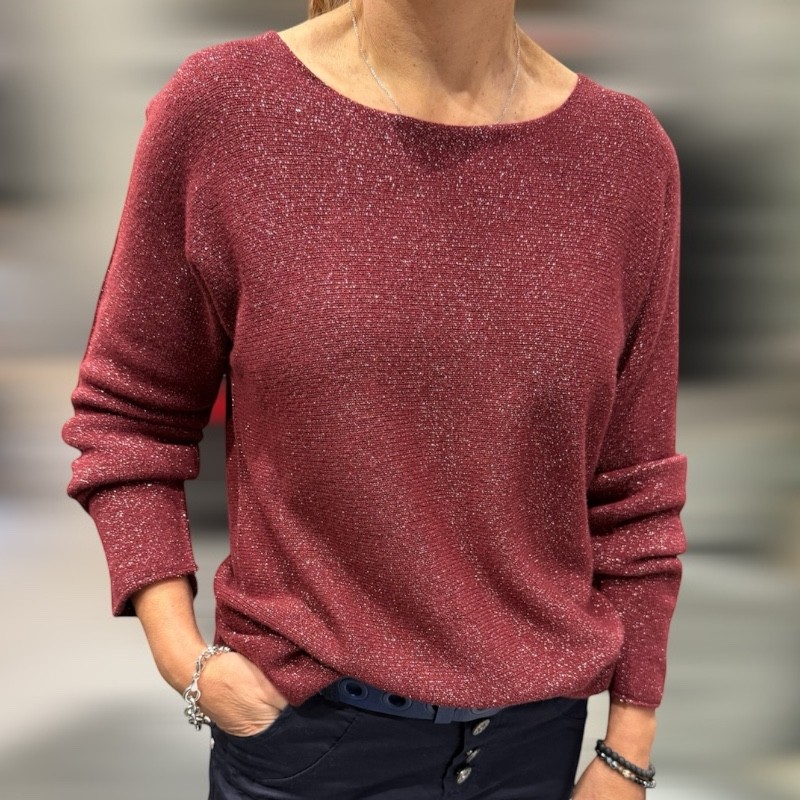 8. Pourquoi acheter en ligne un pull col bateau bordeaux avec paillettes pour un look chic, brillant et confortable