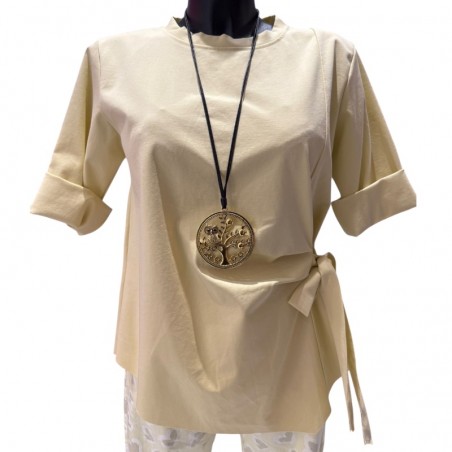 Acheter en ligne une tunique de couleur jaune tendre avec un nœud réglable sur le côté est une excellente manière d’apporter de la douceur et de la lumière à votre garde-robe. Le jaune tendre illumine le teint et évoque la fraîcheur des beaux jours, tout en restant subtil et élégant. Son look décalé ajoute une touche créative qui permet de se démarquer sans excentricité excessive, idéal pour celles qui souhaitent affirmer leur personnalité avec finesse.