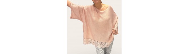 7. Pourquoi commander en ligne un pull rosé curvy oversize avec dentelle pour un style romantique