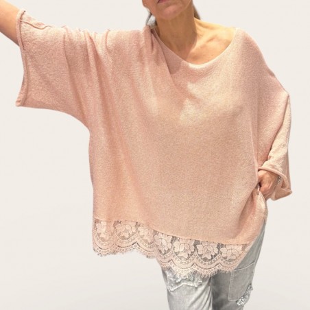 9. Pourquoi choisir un pull rosé curvy oversize avec dentelle et effet brillant pour une tenue élégante